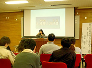 平成21年11月26日(水)、宮崎県内の留学生交流事業の一環として、宮崎大学において「留学生のためのビジネスマナー講座」が開催されました (主催:宮崎地域留学生交流推進協議会)。