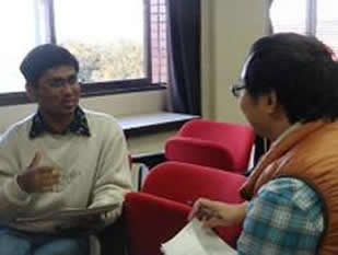 最後に自己PRの実践として取り組んだ模擬面接では、各留学生は緊張しながらも「面接官の質問のポイントを理解しないと自分の意見もまとめられない」、「相手の話を聞くこと、コミュニケーション力が大事」とお互いにフィードバックをしながら冷静に自己分析する姿が見られた。