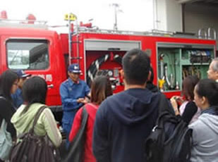 留学生を含む在住外国人やボランティアなど51名が参加し、宮崎南消防署で消防車の説明を受けたり、火災の煙を体験したりしました。消防署員の方に質問をする参加者の姿も多く見られ、防災について熱心に学びました。また、午後からは西都原考古博物館・西都原古墳群見学を行い、宮崎の歴史についても学びました。