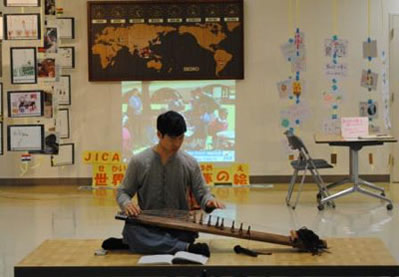 この発表会は、財団法人宮崎県国際交流協会が開催したアートフェスティバルの交流イベントの1つとして開催されたもので、作品展では留学生を含む在住外国人による写真や絵画が展示され、交流イベントでは楽器演奏などが行われました。イベントには多数の方が来場し、賑やかなムードとなりました。