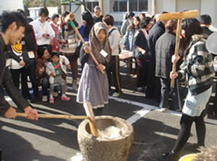 - 餅つきもミニバレーもたいへん楽しかったです。できればもっと多くの留学生と交流したいです。
