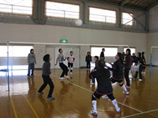 木花地域婦人会の協力により、まず宮崎市木花公民館2階研修室で鏡餅や生け花を見ながら日本のお正月の迎え方について説明を受けました。その後、留学生は慣れない手つきながらも交代で餅つきを楽しみ、木花地域婦人会の方の熟練した技に歓声を上げていました。また、ついた餅は雑煮として昼食にしました。午後からは、グループに分かれてミニバレーの試合を行い、交流を深めました。試合終了後はぜんざいを食べたり抽選会が実施されたりするなど、和やかな雰囲気の中、好評のうちに終了しました。