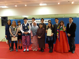 財団法人宮崎県国際交流協会から、優秀な発表者に表彰状と賞品が、受賞者以外にも参加賞が贈呈されました。